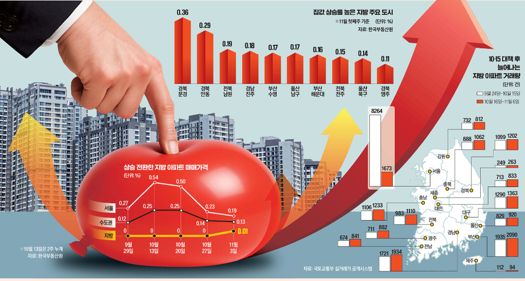 청주, 천안, 창원 등 중소도시의 흐름도 예사롭지 않다. SK하이닉스와 삼성전자의 반도체 투자 확대, 원전·방산 산업단지 확충 등이 실질적인 지역 경제를 끌어올리며 실수요자 중심의 거래가 늘고 있다. 한국부동산원의 11월 첫째 주 통계에 따르면, 지방 아파트 매매가격지수는 8주 연속 상승세를 이어가고 있다.