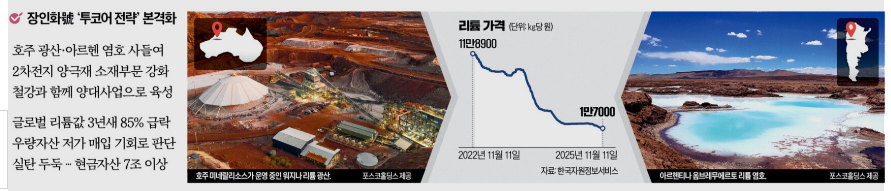 이 같은 대규모 투자는 리튬 가격 급락기에 이뤄졌다는 점에서 주목받고 있다. 2022년 톤당 8만 달러를 넘었던 리튬 가격은 현재 1만5천 달러 안팎으로 80% 이상 폭락했다. 대부분의 글로벌 광산 기업들이 신규 투자를 보류하는 가운데, 포스코는 “이 시기가 오히려 진입의 기회”라고 판단했다. 포스코홀딩스 관계자는 “리튬 수요는 일시적으로 둔화됐지만, 2026년 이후 전기차 시장이 다시 성장세를 탈 것”이라며 “지금의 가격대는 중장기적 관점에서 저점에 가깝다”고 설명했다.