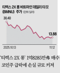 최근 한 달 동안 비트코인 가격은 불확실한 글로벌 금융 환경과 금리 변동, 암호화폐 관련 규제 우려 등으로 급격히 변동했다. 이러한 환경에서 2~3배 레버리지 ETF를 보유한 투자자는 단순 가격 하락만으로도 투자금의 절반 가까이를 단기간에 잃을 수밖에 없었다.