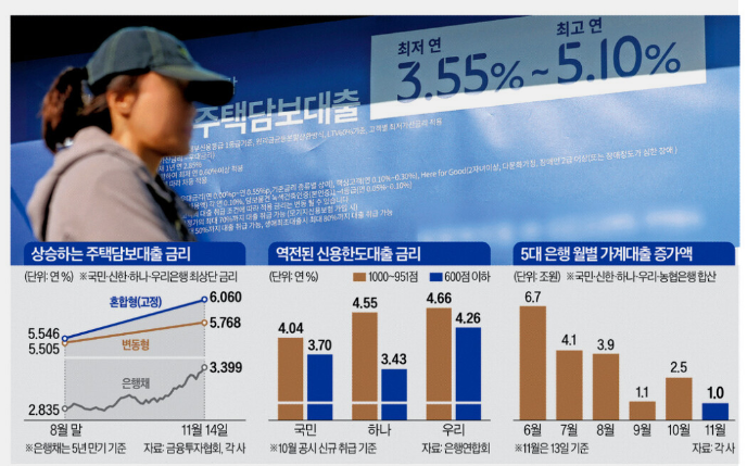 시장금리가 빠르게 오르면서 주택담보대출(주담대) 금리가 다시 연 6%대에 근접하고 있다. 여기에 정부가 잇따라 내놓고 있는 부동산 규제 강화 조치가 더해지며 실수요자의 부담은 더욱 커지는 상황이다. 저금리 시대에 익숙한 가계는 금리 반등 국면에서 대출 구조를 조정할 여지가 줄어들고 있고, 금융기관은 조달비용 증가를 이유로 금리를 연이어 상향 조정하고 있다. 금리와 규제가 동시에 움직이는 ‘이중 압력’ 속에서 대출 시장은 다시 긴장 상태에 들어섰다.