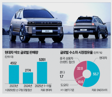 넥쏘의 돌풍은 일시적 유행이 아니라 현대차 수소 전략의 신호탄에 가깝다. 전기차와 수소차를 병행하는 투트랙 전략은 불확실한 친환경 전환 국면에서 리스크를 분산하는 선택이기도 하다. 수소경제는 단기간에 완성되지 않는다. 그러나 기술, 인프라, 산업 생태계를 동시에 준비해 온 기업에게 기회는 먼저 온다. 넥쏘를 발판으로 현대차가 수소경제의 속도를 높일수록, 미래 모빌리티 경쟁의 주도권은 한층 선명해질 것이다.