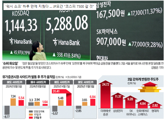 이번 ‘워시 쇼크’는 한국 증시가 얼마나 민감하게 글로벌 정책 변수에 반응하는지를 보여준 사례다. 동시에 공포가 과도할 경우 시장은 빠르게 이를 되돌린다는 점도 확인시켰다. JP모간의 코스피 7500 전망은 단기 목표라기보다 중장기 구조적 강세를 전제로 한 시나리오에 가깝다.