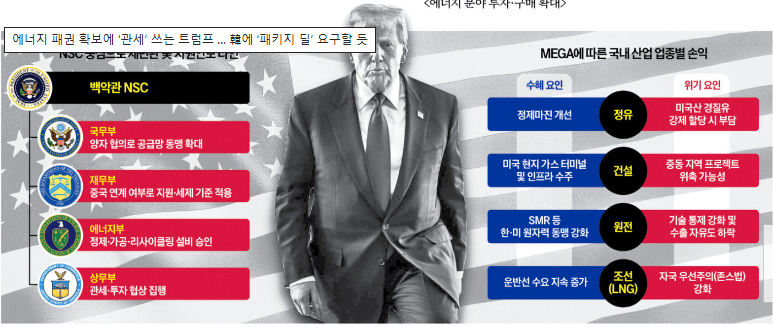 트럼프의 관세 카드는 이제 보호무역을 넘어 에너지 패권 전략으로 진화했다. 한국에 대한 ‘패키지 딜’ 요구 가능성은 단순한 가정이 아니라 현실적인 시나리오다. 대응의 핵심은 속도와 전략이다. 단기 충격을 피하기 위한 임시방편이 아니라, 에너지 안보와 산업 경쟁력을 함께 지키는 중장기 협상 프레임을 마련해야 한다. 관세 압박을 위기로만 볼 것이 아니라, 한국의 에너지·산업 전략을 재정비하는 계기로 삼을 수 있을지, 이제 시험대에 올랐다.